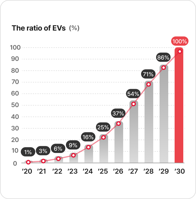 Since 2021, we have joined the Ministry of Environment’s “K-EV100” initiative and the Climate Group’s “EV100” initiative,