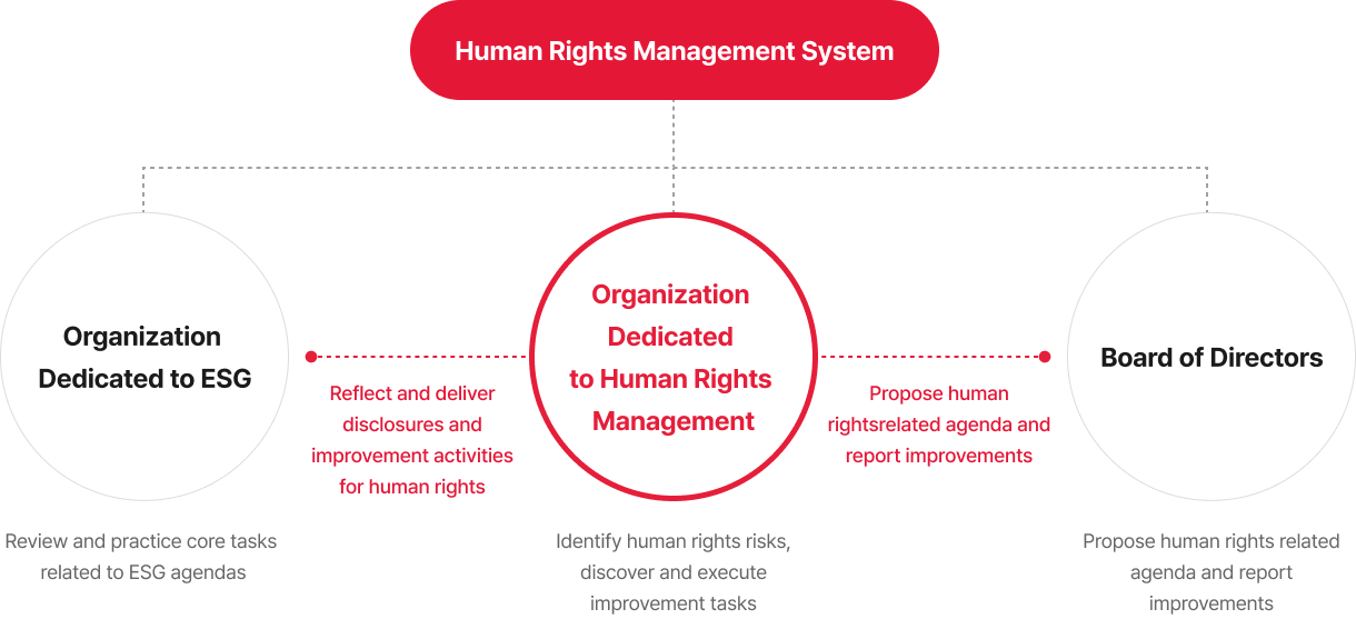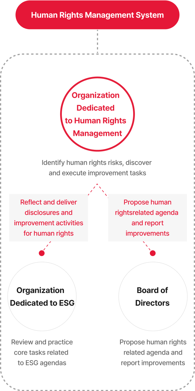 SK Rent-a-Car oversees human rights-related matters within the Board of Directors based on policies and roadmap established by the dedicated Human Rights Management Division. We will also disclose our progress in implementing human rights management system to our stakeholders.